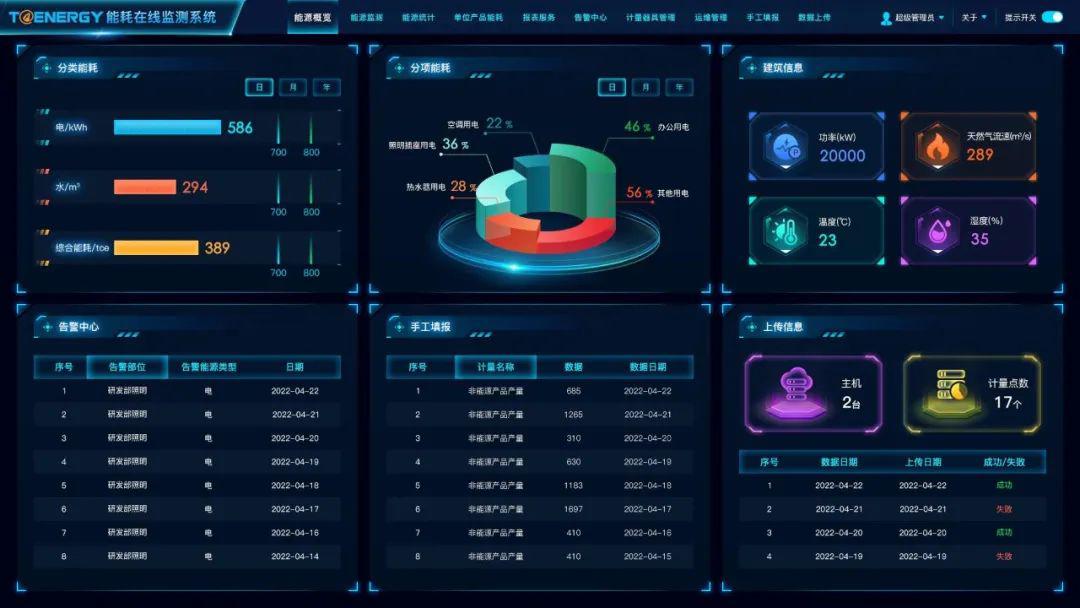 对重点用能设备、用能系统的能耗指标和能效指标,及建筑单位能耗指标等参数进行实时监控,对规定的节能目标设置警戒线,对未达目标的指标进行自动告警和动态实时监测: