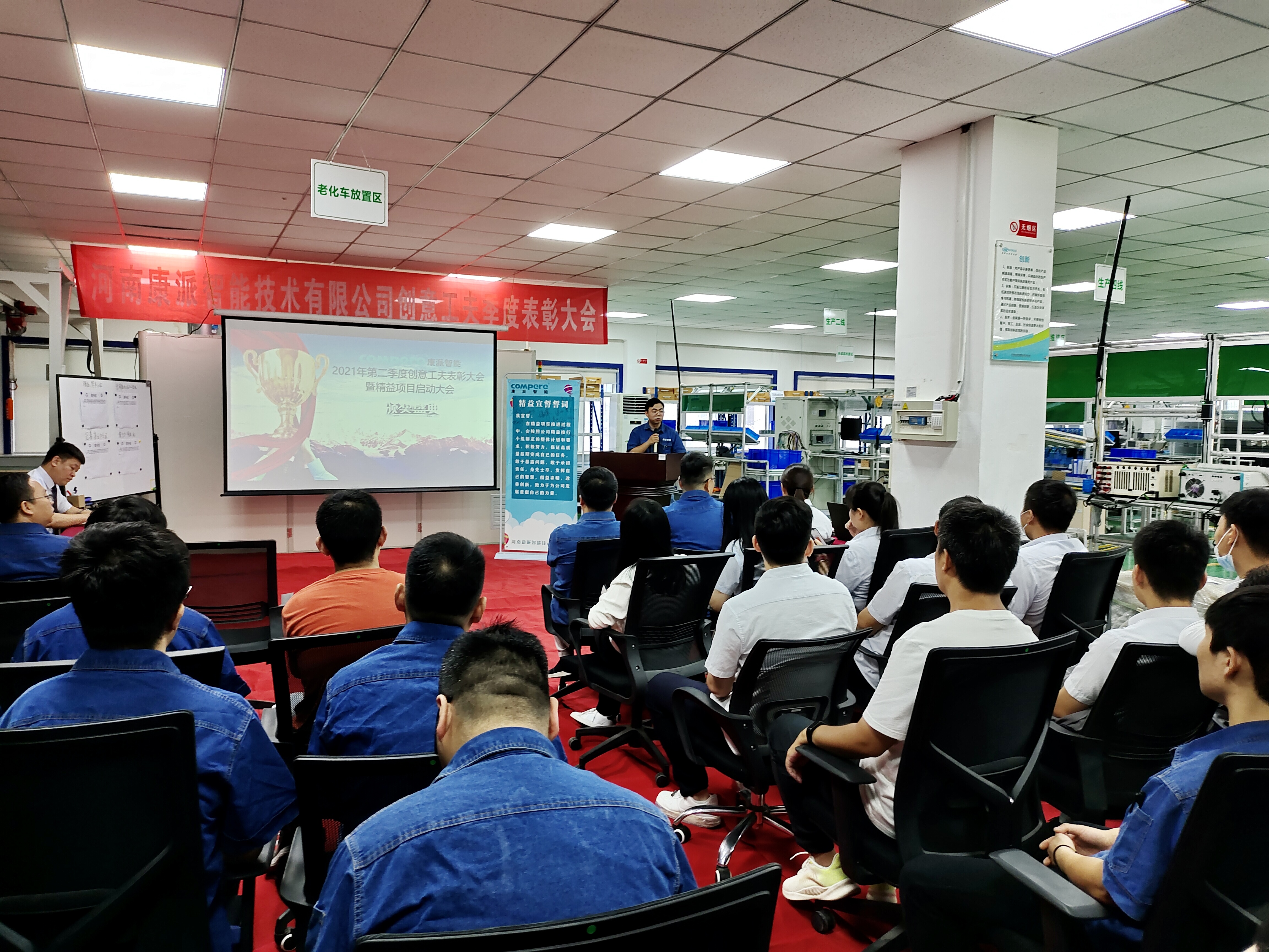 获得区域5S二星认证不是精益工作的终点,而是一个新的开始。2021年下半年,公司将立项四个新的精益项目,精益降本小组、完善售后小组、东明路办公区5S二星小组、综合办精益小组,从4个不同方面更加深入地开展精益工作。通过小组宣誓、签署军令状,各精益小组不仅展示了精益工作的决心,更是诠释了康派人永不止步、自我革新的精神。在未来的工作中,希望大家认真践行精益精神,用理论武装大脑,用思想指导行动,与公司共创未来。