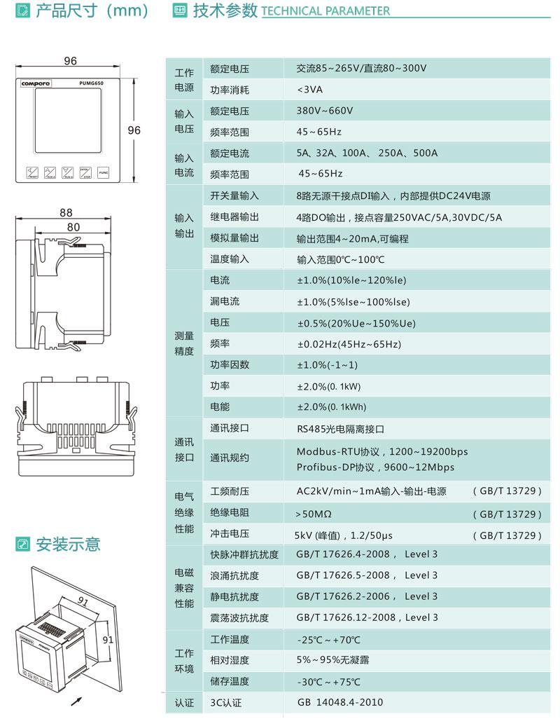PUMG650系列低压电动机保护控制器适用于额定电压380V至660V、额定电流5A至500A的控制保护回路,提供了完善的保护控制措施,基于多种总线的通讯方式可以实现电机的网络化管理.