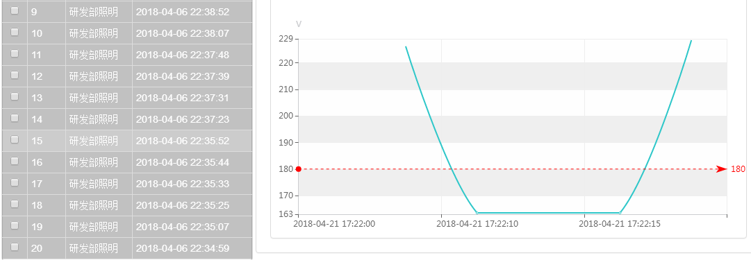 秒级实时数据主要展示用电设备电压、电流、有功功率、无功功率和功率因数等数据,每5钟刷新一次。选择集中器,选择监测点,点击查询就会调出当前用能设备分钟级实时数据。点击数据变量,就会生成与之相对应的实时曲线,通过曲线查看数据情况,进而了解设备运行情况。