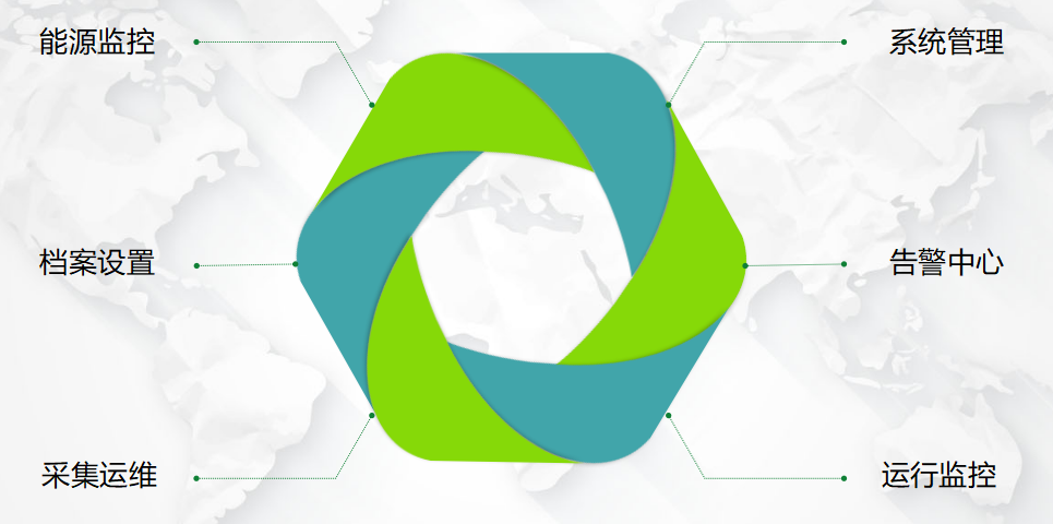 T@Data 主要功能分为:能源监控、档案设置、采集运维、系统管理、告警中心、运行监控。
