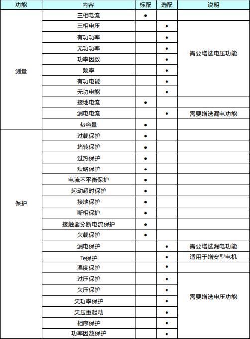 由于电动机应用的用途、性能、环境,因此电动机保护的功能种类和数量也有所差异。所以用户在选择电动机保护器功能时,可能在选择保护功能时不尽相同。因此,澳门新葡平台从用户的角度出发,避免在电动机保护器选型上的不便以及购买非必要功能造成的额外支出,澳门新葡平台编排了一个标准的电动机保护器的选型。