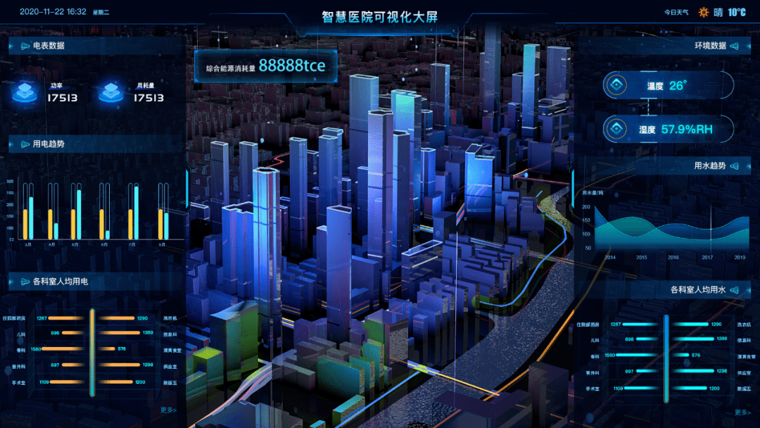 2)通过分类分项能耗实时监测、趋势跟踪与对比,总结医院用能规律,提供用能负荷错峰管理依据,缩短异常能耗发现、定位与处理时间,减少能源浪费。