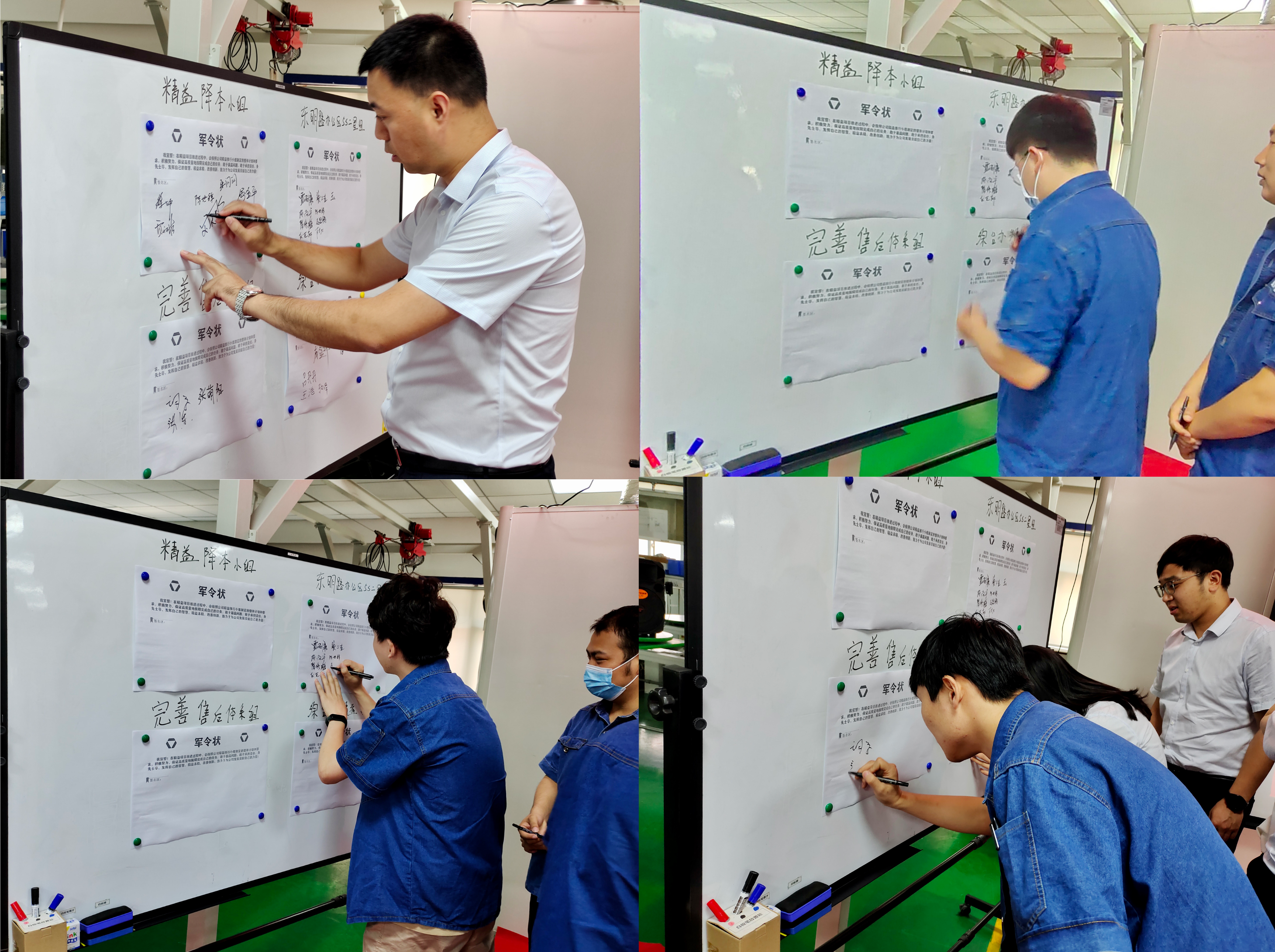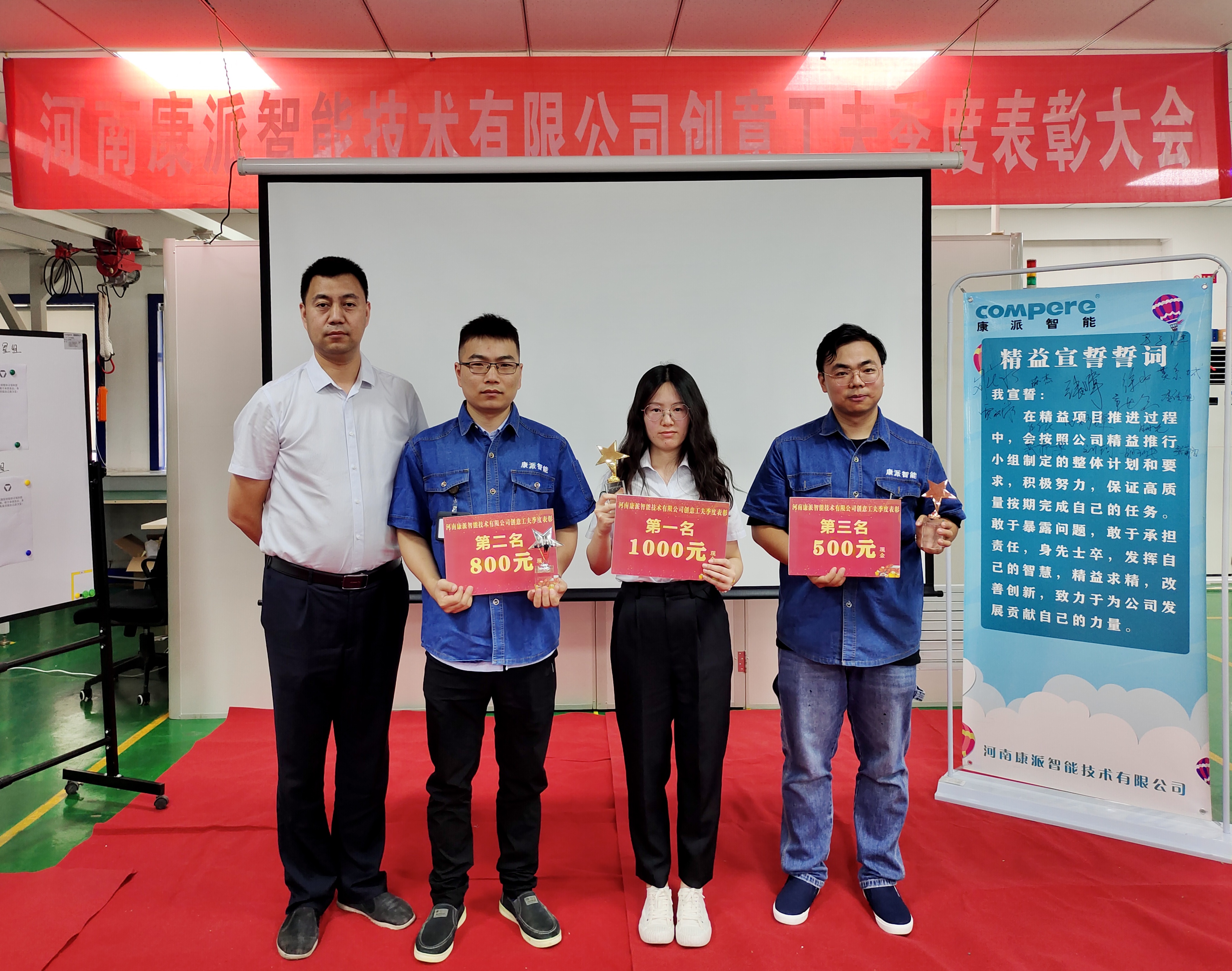 获得区域5S二星认证不是精益工作的终点,而是一个新的开始。2021年下半年,公司将立项四个新的精益项目,精益降本小组、完善售后小组、东明路办公区5S二星小组、综合办精益小组,从4个不同方面更加深入地开展精益工作。通过小组宣誓、签署军令状,各精益小组不仅展示了精益工作的决心,更是诠释了康派人永不止步、自我革新的精神。在未来的工作中,希望大家认真践行精益精神,用理论武装大脑,用思想指导行动,与公司共创未来。
