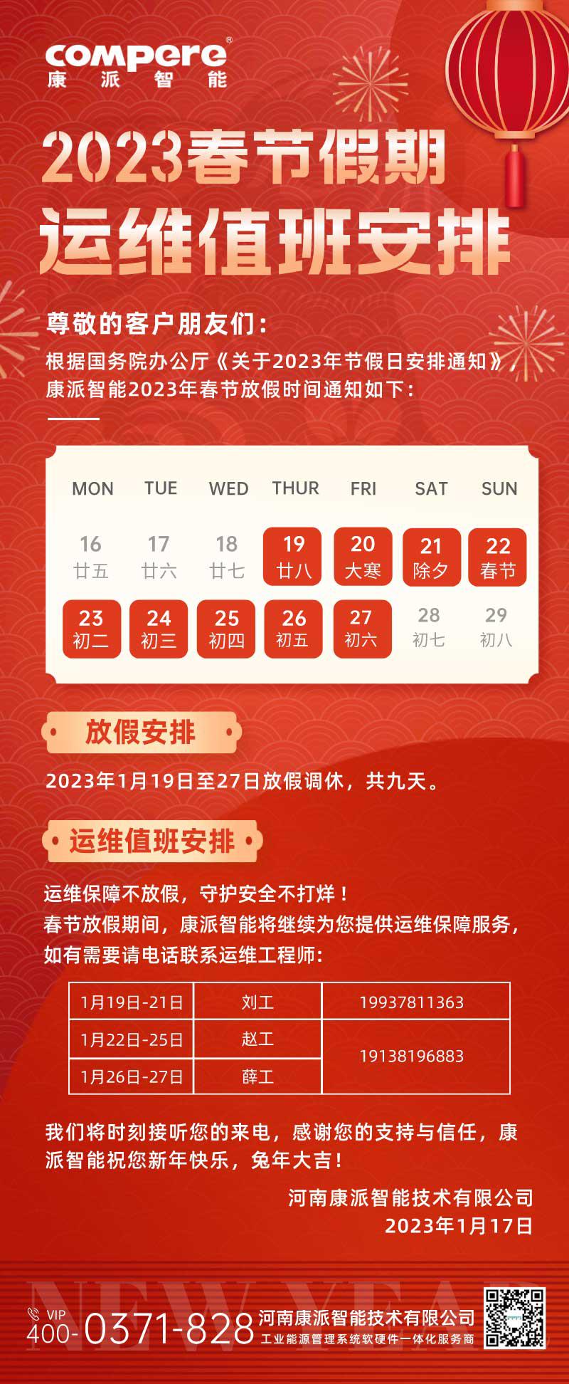 春节放假期间,澳门新葡平台将继续为您提供运维保障服务!
