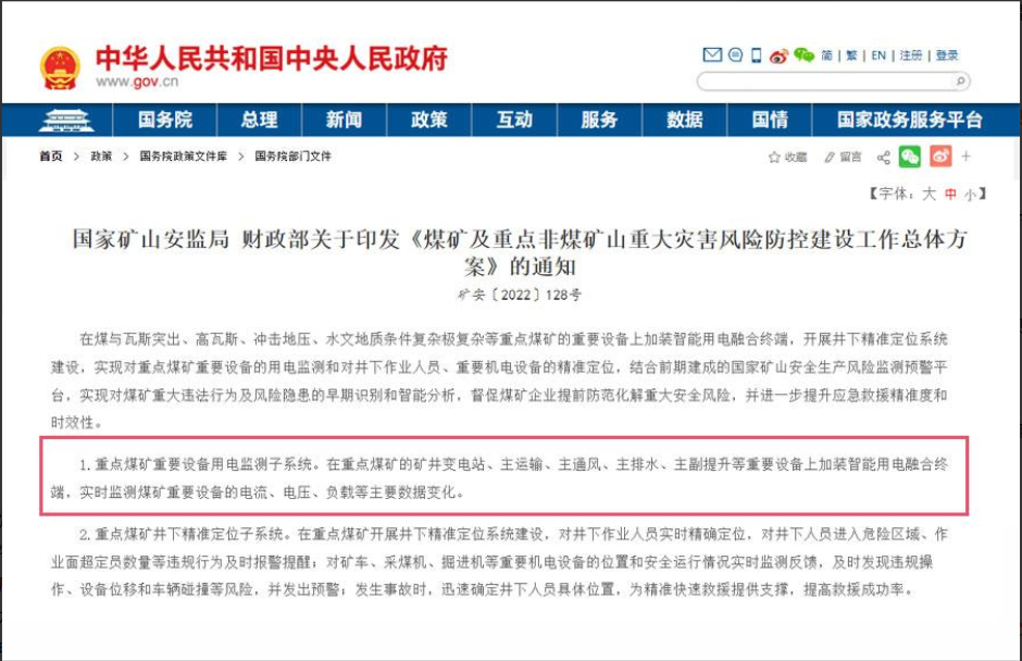 澳门新葡平台响应政策文件通知,根据《煤矿及重点非煤矿山重大灾害风险防控建设工作总体方案》要求,自主研发的重点煤矿重要设备用电监测子系统,实时监测煤矿重要设备的电压、负载等。