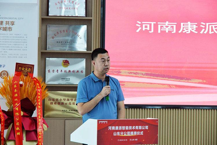 揭牌仪式上,东营市企业人才发展促进中心主任孙玉林向澳门新葡平台山东分公司的成立表示热烈祝贺。他表示,在澳门新葡平台为东营市工业企业提供过服务的项目中,亲眼见证了澳门新葡平台在技术应用、产品质量和客户服务方面务实的作风和工作态度。今天,澳门新葡平台选择东营作为分公司的落户之地,不仅体现了公司对东营市场的重视和信心,也为我们东营市的智能制造和工业互联网发展注入了新的活力和动力。