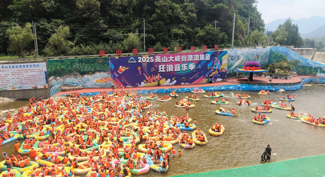 抵达景区后,先以一顿丰盛的午餐 “蓄能”,随后重头戏登场:尧山大峡谷漂流,我们来啦!